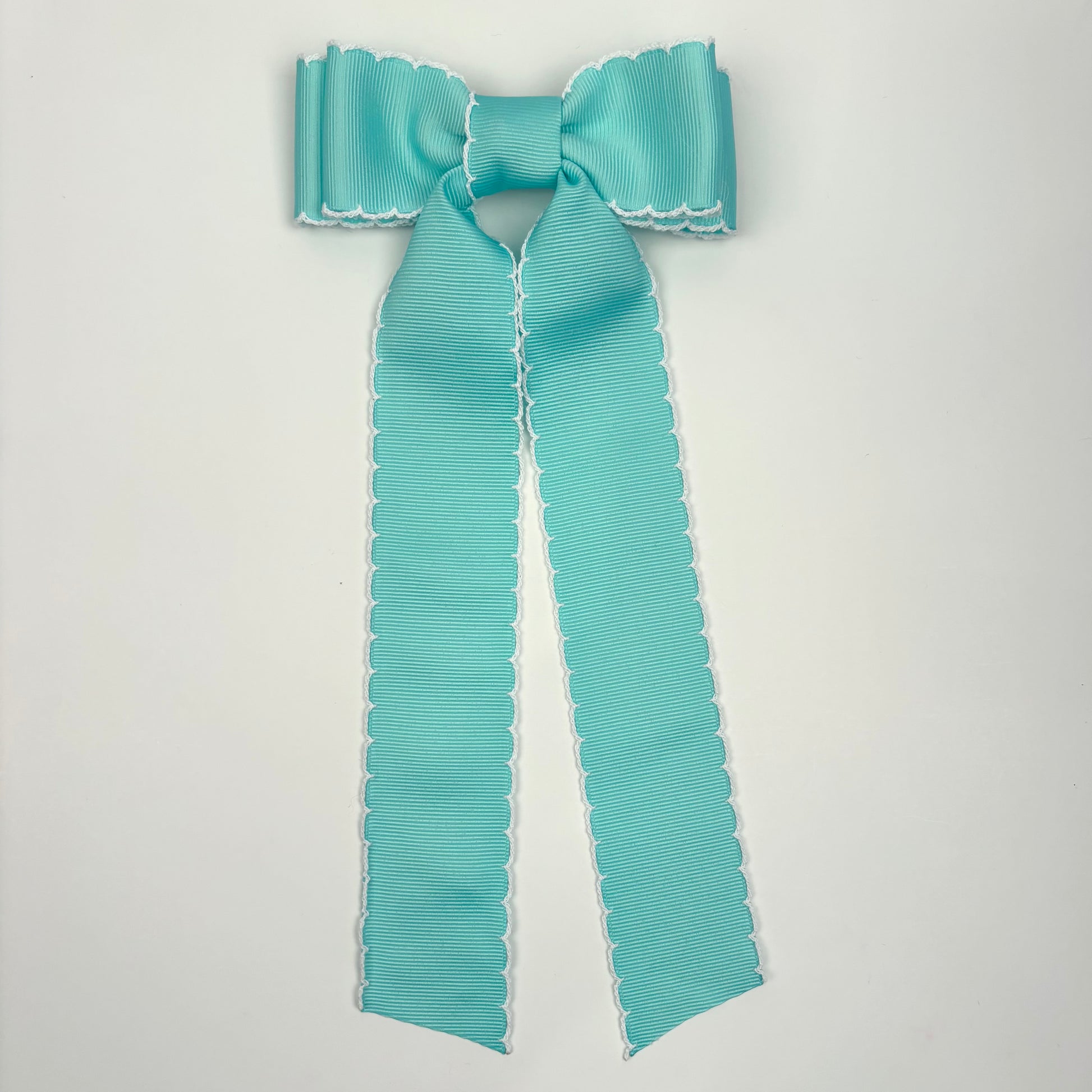 Handcrafted Turquoise Moonstitch hairbow.