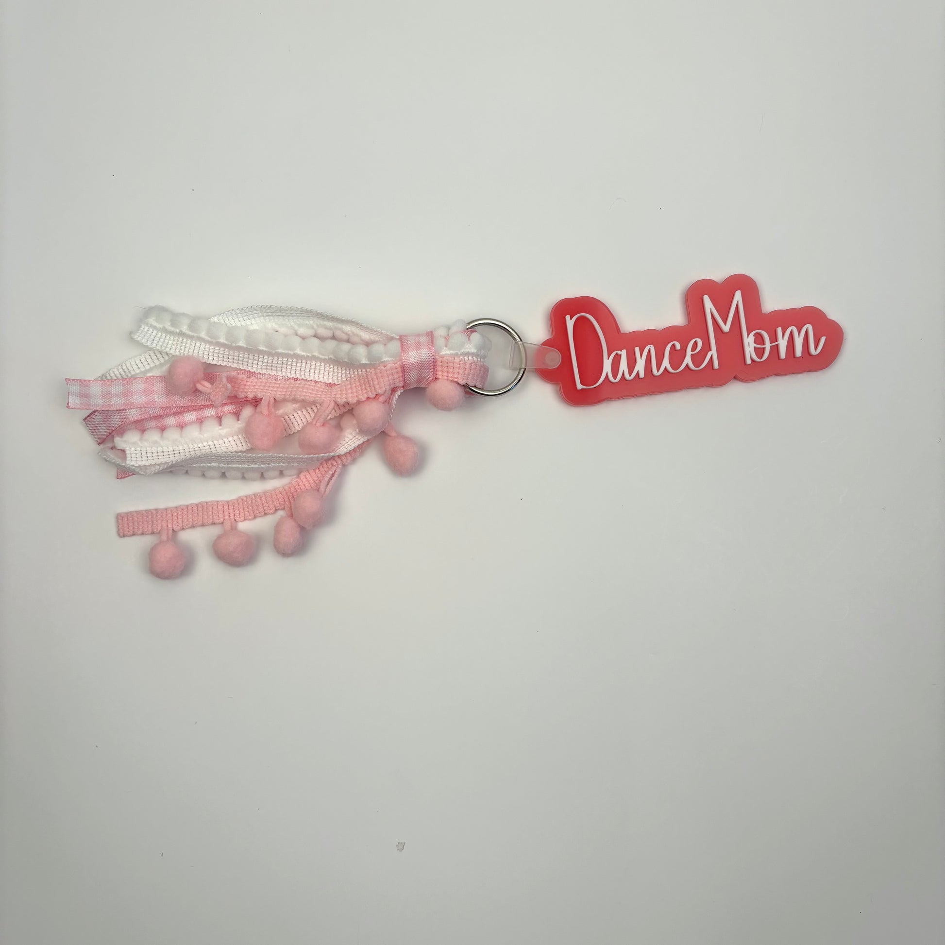 Acrylic and Ribbon Dance Mom Pink Keychain