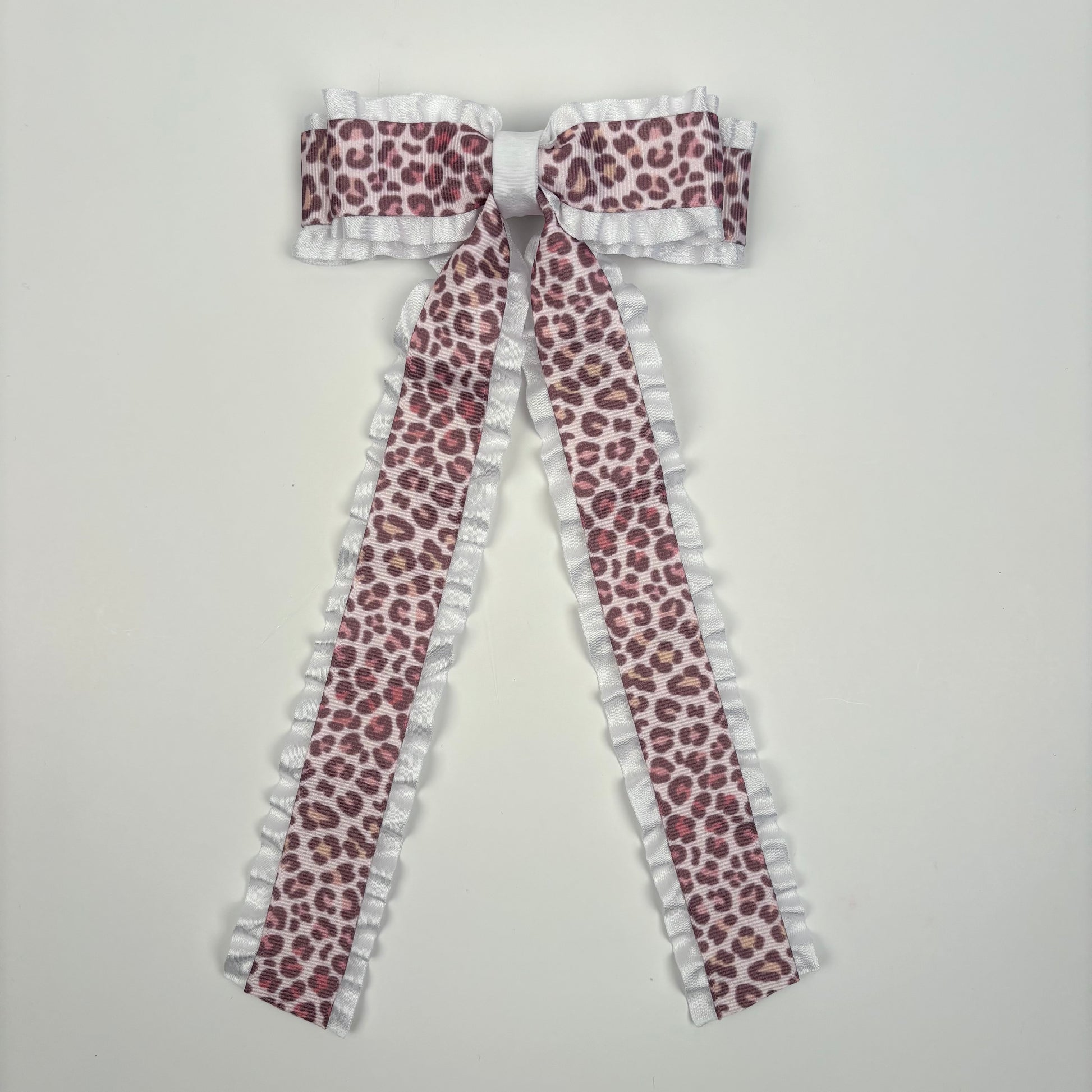 Handcrafted Sundet Cheetah Double Ruffle hairbow.