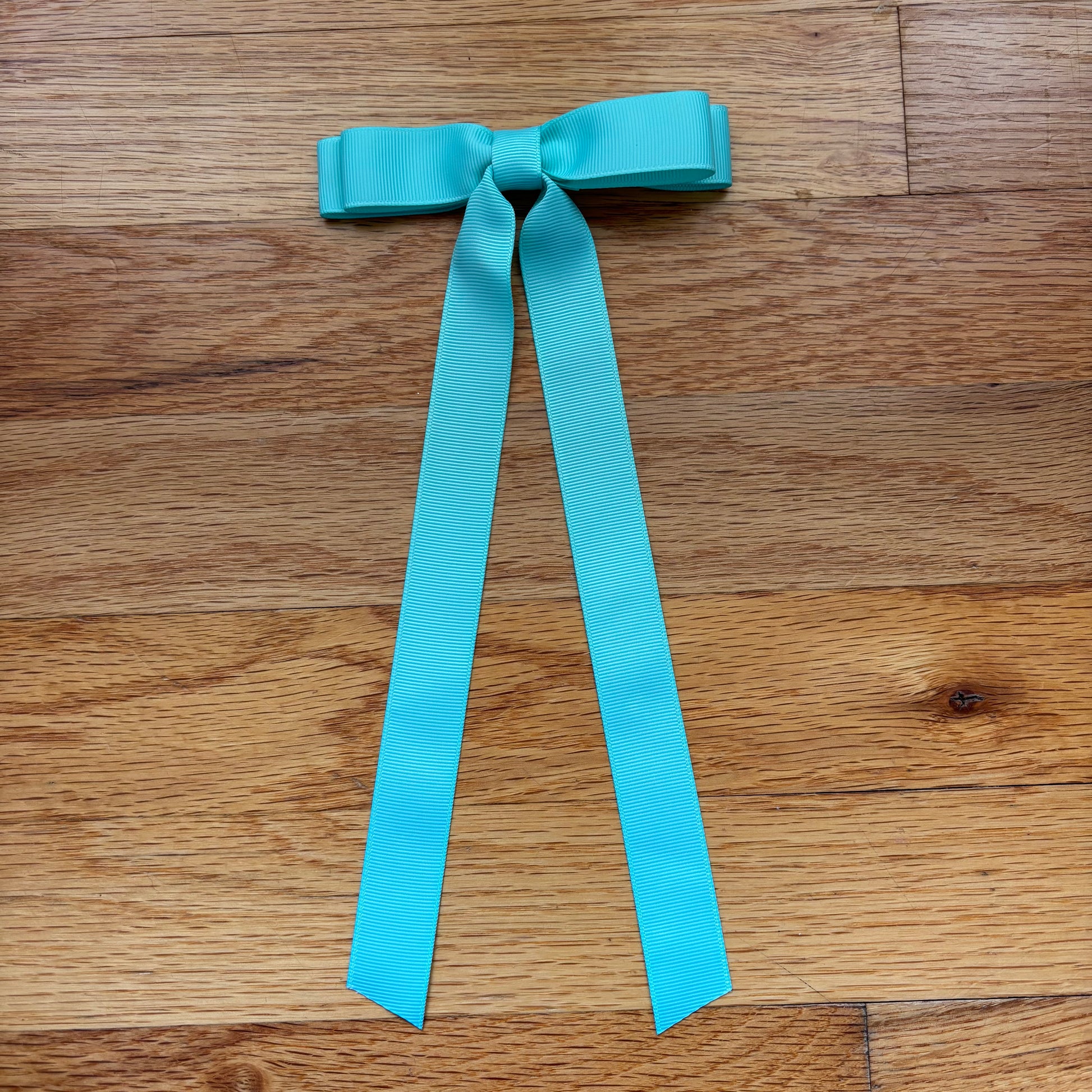 Handcrafted Aqua grosgrain hairbow.