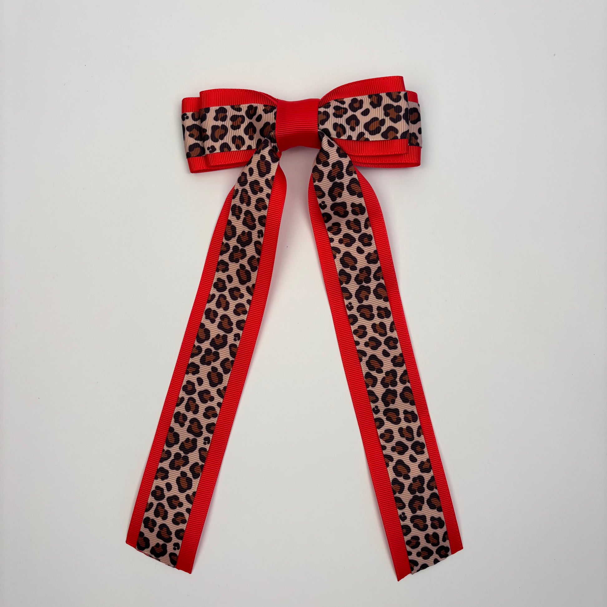 Handcrafted Red Cheetah Double Ruffle hairbow.