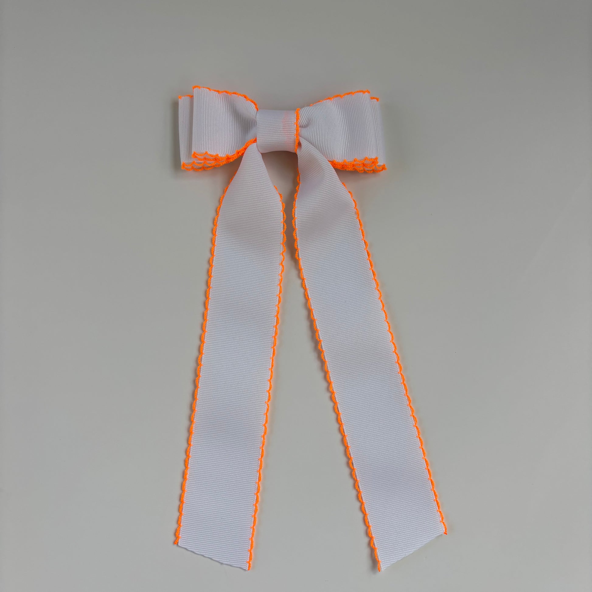 Handcrafted White with Neon Orange Moonstitch hairbow.
